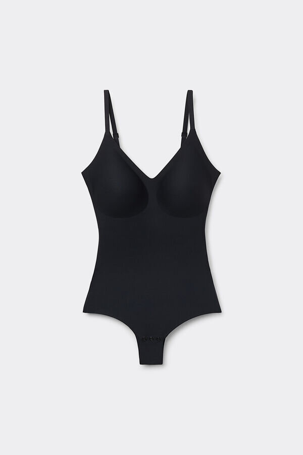 bodysuit s podprsenkou eri z měkkého mikrovlákna, bezešvý pro neviditelný efekt pod oblečením. pohodlný a přiléhavý, zaručuje maximální pohodlí a přizpůsobí se vašemu tělu a vašim pohybům. ideální pro zdůraznění pasu. pro větší objemový efekt vložte do košíčků přiložené polštářky demi-lune. Ideální k nošení jako spodní prádlo nebo také pod sakem nebo průsvitným topem.