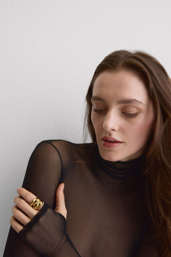 tylový body, který lze nosit jako smyslný top a potěšit svou průsvitností, ideální také pro vytváření looků a vrstvení vhodných pro mnoho příležitostí. detaily s otvory pro palce vytvářejí efekt rukavic bez prstů. látka je extrémně měkká, přiléhavá a velmi pohodlná.