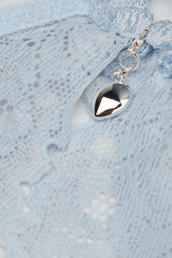 push-up podprsenka Monica s košíčky z elastického hedvábného saténu, zdobená jemnou elastickou krajkou s květinovou výšivkou. Elegantní krajkový volánkový motiv na zadní straně je zdobený přívěskem ve tvaru srdce s kamínky. Je to ideální model pro ty, které chtějí zdůraznit dekolt nebo záda.