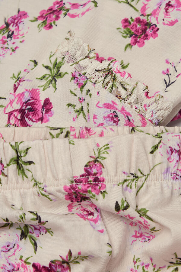 pyžamo s dlouhými nohavicemi z měkké a pohodlné bavlny Superior s romantickým a barevným květinovým potiskem. Kapsy na košili zdobí krajkové volánky.