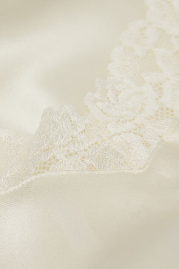 hedvábné saténové tílko s výstřihem do V vpředu i vzadu, zdobené krajkovými vložkami u výstřihu a na lemu. v závislosti na zvolené barvě může být krajka kontrastní nebo tón v tónu. plně nastavitelné tenké hedvábné ramínka. regular fit.