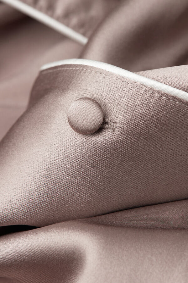 pánská košile s krátkým rukávem z lehkého strečového hedvábného saténu s lemováním v tónu v tónu nebo v kontrastní barvě, v závislosti na vybrané barvě. elegantní a pohodlná, je ideální pro vytvoření rafinovaného večerního outfitu, ale lze ji nosit i jako svrchní sako k kalhotám nebo džínám.