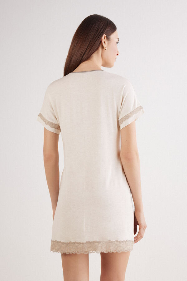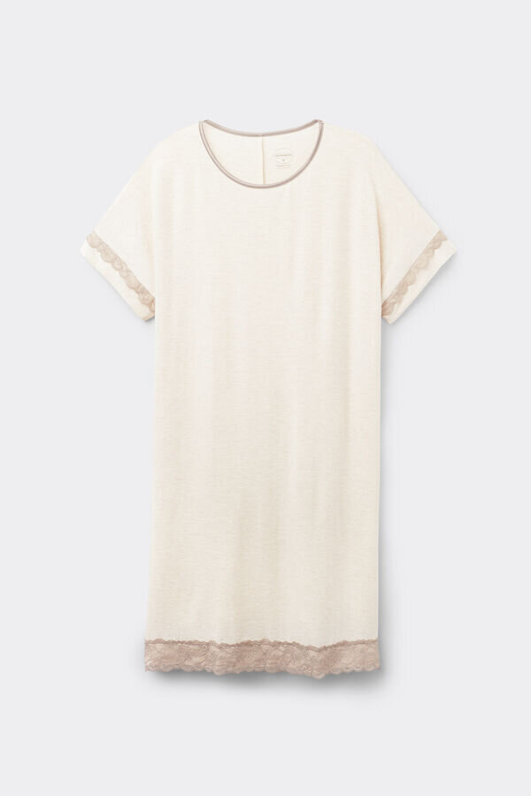 noční košile se zaobleným výstřihem a krátkými rukávy z měkkého, lehkého strečového modalu. oděv je zdoben krajkou na rukávech a lemu. regular fit.