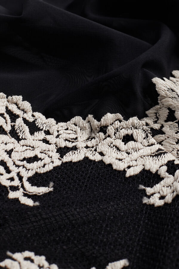babydoll z jemné a průsvitné krajky a tylu. v závislosti na zvolené barvě může být krajka kontrastní nebo tón v tónu. plně nastavitelné elastické ramínka. regular fit.