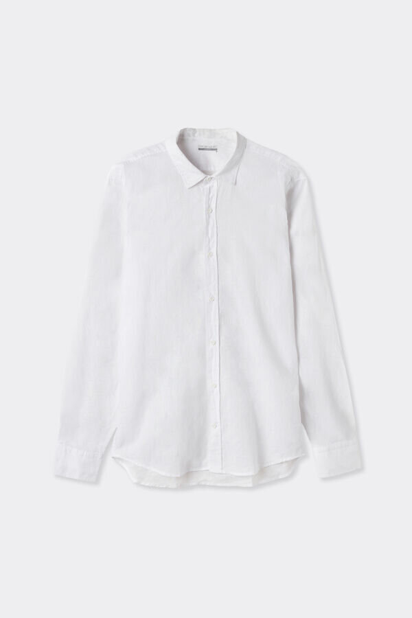 košile s dlouhým rukávem z lnu a bavlny s límečkem a manžetami. zadní záložka. regular fit.