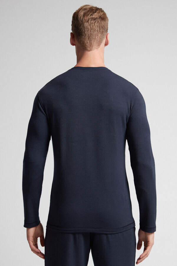 pánské tričko s dlouhým rukávem a kulatým výstřihem ze směsi modalu a kašmíru. neuvěřitelně měkké a pohodlné. model je vysoký 185 cm a má na sobě velikost l. prodává se v obchodech Intimissimi man.