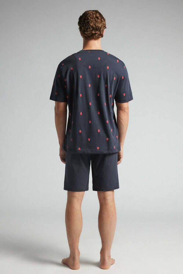 krátké pyžamo z bavlněného úpletu s celoplošným potiskem a flokovaným nápisem Spider-Man na horním dílu. Jednobarevné kalhoty s potiskem Spider-Man.