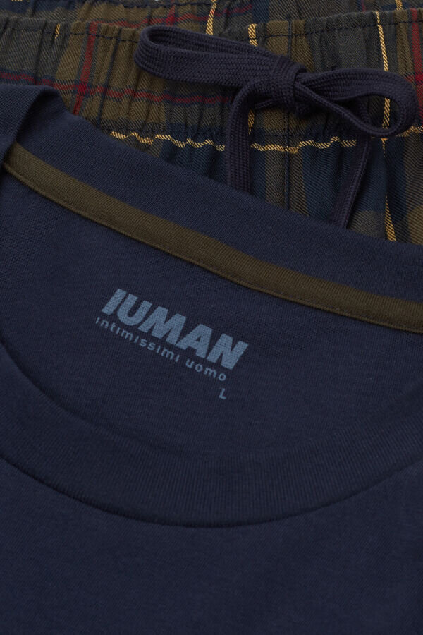 krátké pyžamo s měkkým jednobarevným bavlněným tričkem s kostkovaným vzorem a kapsou z plátna. bavlněné kraťasy s kostkovaným vzorem.