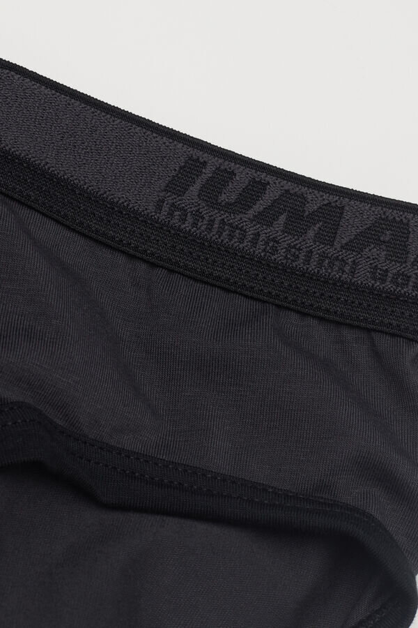 kvalitní bavlněné slipy s viditelnou gumou s logem a lemováním, které je buď tón v tónu, nebo v kontrastní barvě, v závislosti na vybrané barvě.